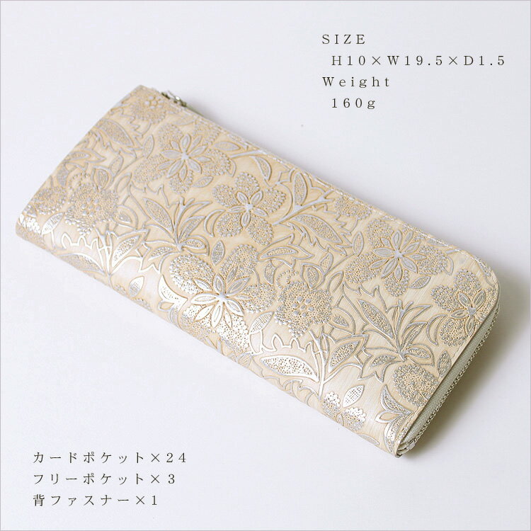 サイズ(最大部を計測) 縦幅10cm 横幅19.5cm マチ幅1.5cm 商品詳細 素材イタリア製型押し牛革 内側収納カードポケット×14・フリーポケット×2 外側収納背面ファスナー付ポケット×1 開閉ファスナー 重さ約195g 備考・商品写真は実物のカラーにより近づけるために加工してありますが、お客様のご覧になるパソコン環境により実際の商品と画像の色が異なって見える事があります。