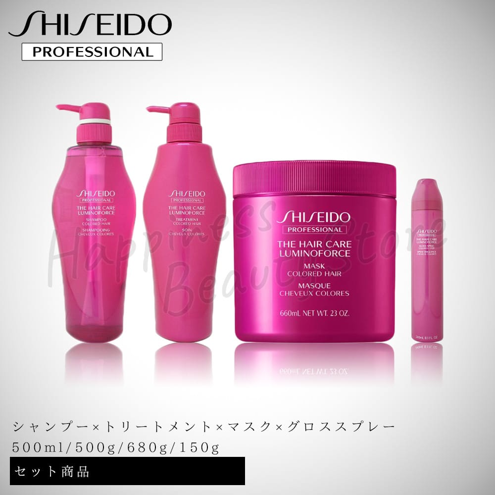 【送料無料(本州・四国限定)】 資生堂 ルミノフォース シャンプー 500ml & トリートメント 500g & マスク 680g & グロススプレー 150g (shiseido luminoforce) ヘアカラー 長持ち P11Sep16
