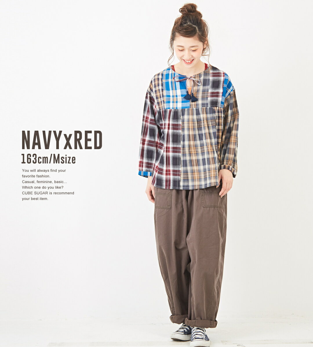 メーカー希望小売価格はメーカー商品タグに基づいて掲載しています この商品のメーカー希望小売価格はこちらからご確認ください 商品番号:18100899 商品カテゴリ:ブラック ネイビー ピンク ブルー レッド 黒 紺 ブルー 青 赤 マドラスチェック チェック柄 ストライプ柄 総柄 パッチワーク リメイク風 M Mサイズ レディース 女性 OL トップス ブラウス シャツ プルオーバー 襟なし 長袖 長そで リボン タッセル ギャザー ドロップショルダー ビッグサイズ ビッグシルエット 大きいサイズ ゆったり 大きめ 楽ちん 動きやすい シンプル カジュアル きれいめ ウィメンズ 春 夏 春夏 コーディネート 人気 定番 可愛い かわいい かっこいい お洒落 おしゃれ 大人 個性的 生地 柔らかい トレンド ミディアム丈 ミドル丈 アメカジ アメリカンカジュアル 大人カジュアル ナチュラル 大人ナチュラル エスニック 普段着 出かけ着 新作 新着 インド コットン 綿チェックブラウス / CUBE SUGAR インド綿ミックスチェック プルオーバーブラウス (3色) ■軽やかで爽やかなチェックを組み合わせ。