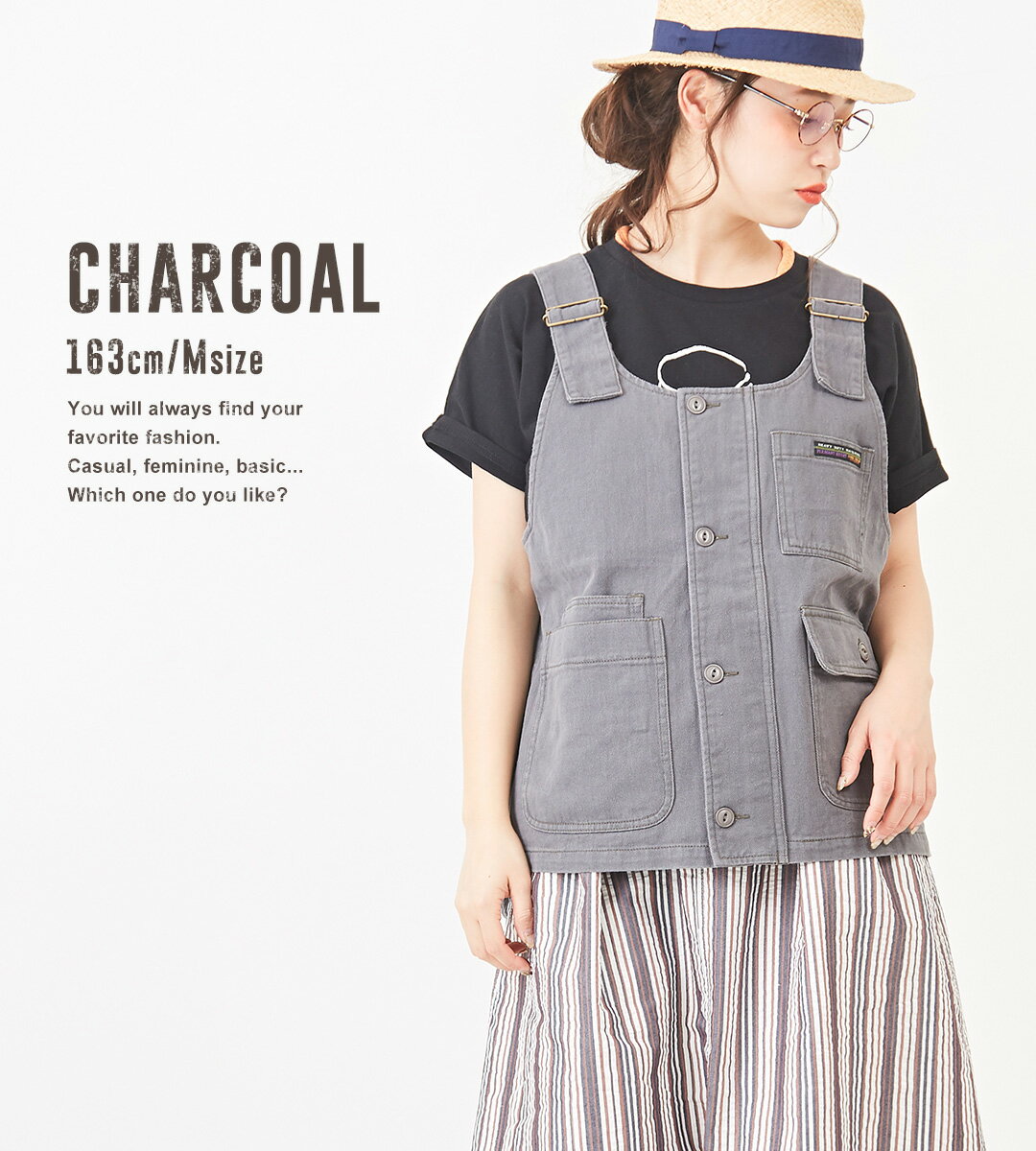 Spring CLEARANCE【30%OFF】ワークベスト / 春新作 / CUBE SUGAR やわらかツイル ワークベスト (2色): レディース トップス ベスト ポケット ボタン 無地 ベルト ミリタリー ワーク キューブシュガー