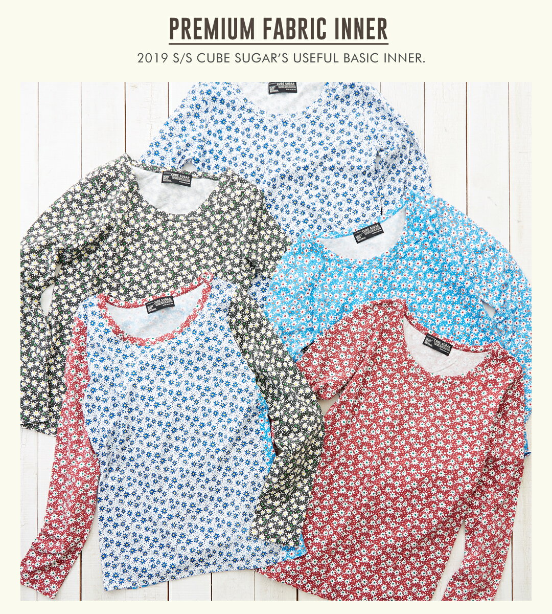 5/18 20:00start 春SALE【30%OFF】花柄インナー / 春新作 / CUBE SUGAR 天竺花柄プリント フラワークルーネック長袖 (5色): レディース トップス インナー ロンTカットソー プルオーバー キューブシュガー 総柄 フラワープリント クルーネック 長袖