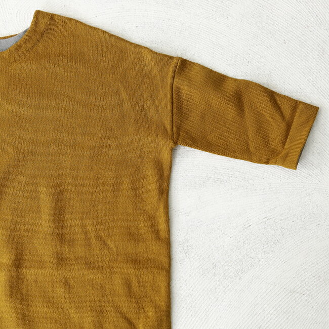 袖が短めの作りなので、インナーをレイヤードして差し色にするのがおすすめ★